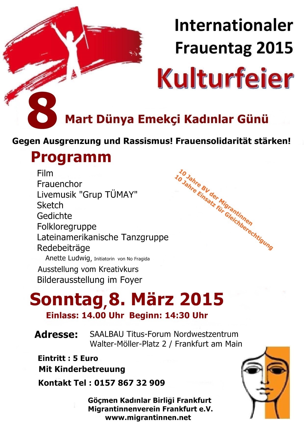 8 Mart Pazar günü saat 14:00’da SAALBAU Titus-Forum’da görüşmek dileğiyle.